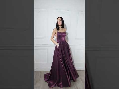 Wow them in our metallic purple A-line ballgown with jeweled pockets. All the beauty of the Grace M ballgown, but this time in our shiny metallic look fabric. We also adore the vibrant red and sultry black. The most beautiful and special A-line ballgown there is.