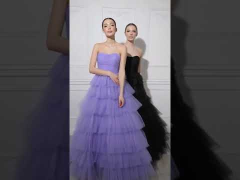 Our strapless tulle ballgown, with its frothy layers is a romantic dream of a dress. Chose from dramatic and sophisticated black, pretty as a princess pink or luscious lilac. Whichever shade you select this tulle ball gown will be the belle of your ball or prom.