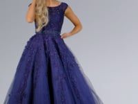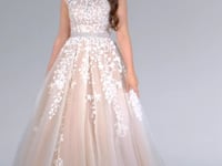 The Sherri Hill signature applique updated in a brand new style. Pretty cap sleeves and beaded belt with small insert strappy back. Always a favourte. We love the super special Ivory/Nude and elegant Navy.