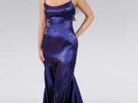 Sherri Hill 53351, Wow we are loving the new high shine wet look fabric from the Sherri Hill 2020 collection. Scoop neck, double skinny straps, and tight to mid-thigh then inverted V to soft waterfall hem. Wow! we love the classic but still sexy Navy.